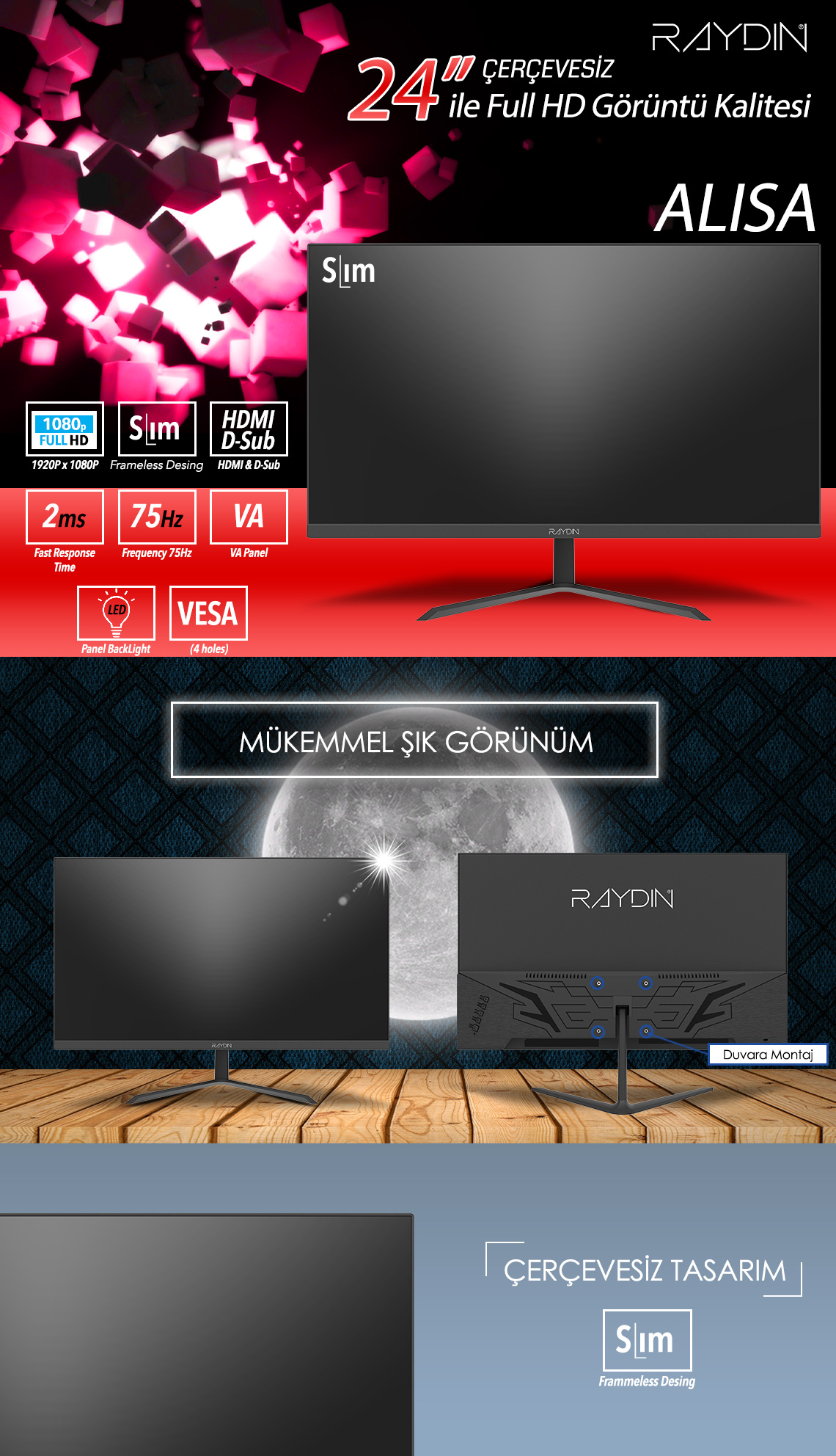 Ekran Tipi: Çerçevesiz Tasarım Düz Ekran