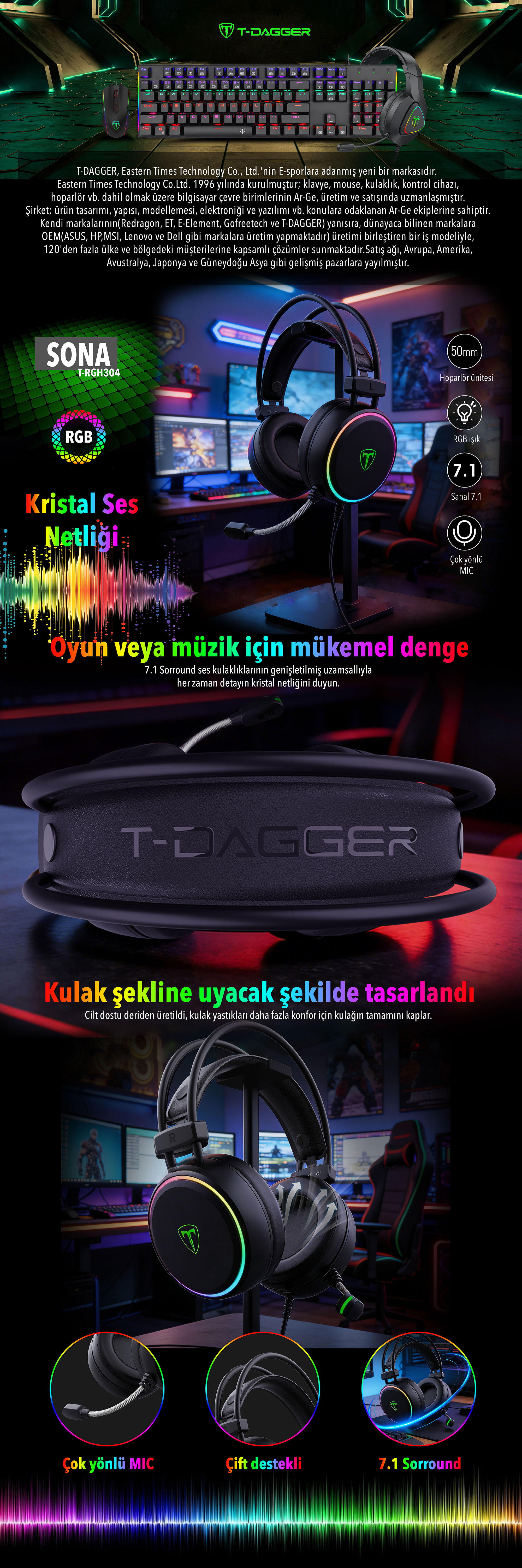 EKSTRALAR: Kulaklık kapaklarında RGB aydınlatma. Mikrofon üzerinde yeşil LED ışık. Kulaklık kapağında ses kontrolü.